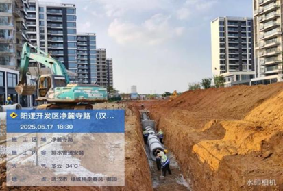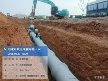 阳逻开发区净麓寺路(汉施公路—柴泊大道)道排工程项目2025年3月15日复工建设,预计2025年12月30日完成柴泊大道至施岗路段道路建设,目前正在进行排水工程雨污水管道安装作业。