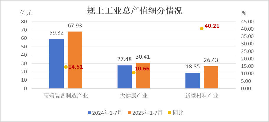园区“两主一重”的3个行业大类中,产值均实现同比正增长,整体增长面达18.1%,其中新型材料产业1-7月产值增幅达40.21%。1-7月产值增幅超过50%的企业29家;1-7月产值超亿元企业23家,较上年同期增加5家。