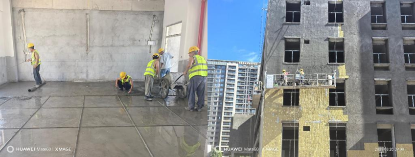 万山学校目前正在进行1#2#楼室内水磨石施工,1#2#楼外墙保温施工,预计项目整体2025年12月30日完工。